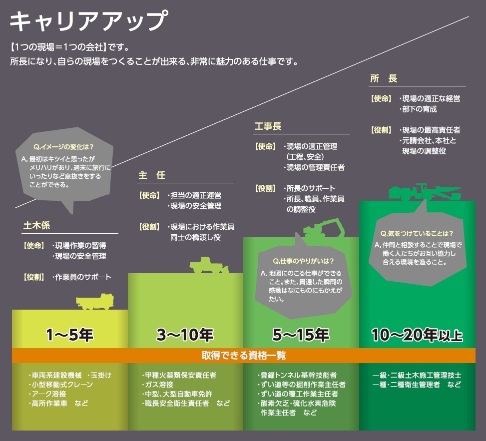 免許・資格取得状況 1級土木施工管理技士 19人 2級土木施工管理技士 11人 1級土木施工管理技士補 8人 2級土木施工管理技士補 6人 甲種火薬類取扱 31人発破技士 67人 トンネル基幹技能者 26人クレーン運転士 17人1級建設業経理士 1人 2級建設業経理士 5人 社会保険労務士 1人 国土交通大臣顕彰者 4人 大林組スーパー職長認定者 12人